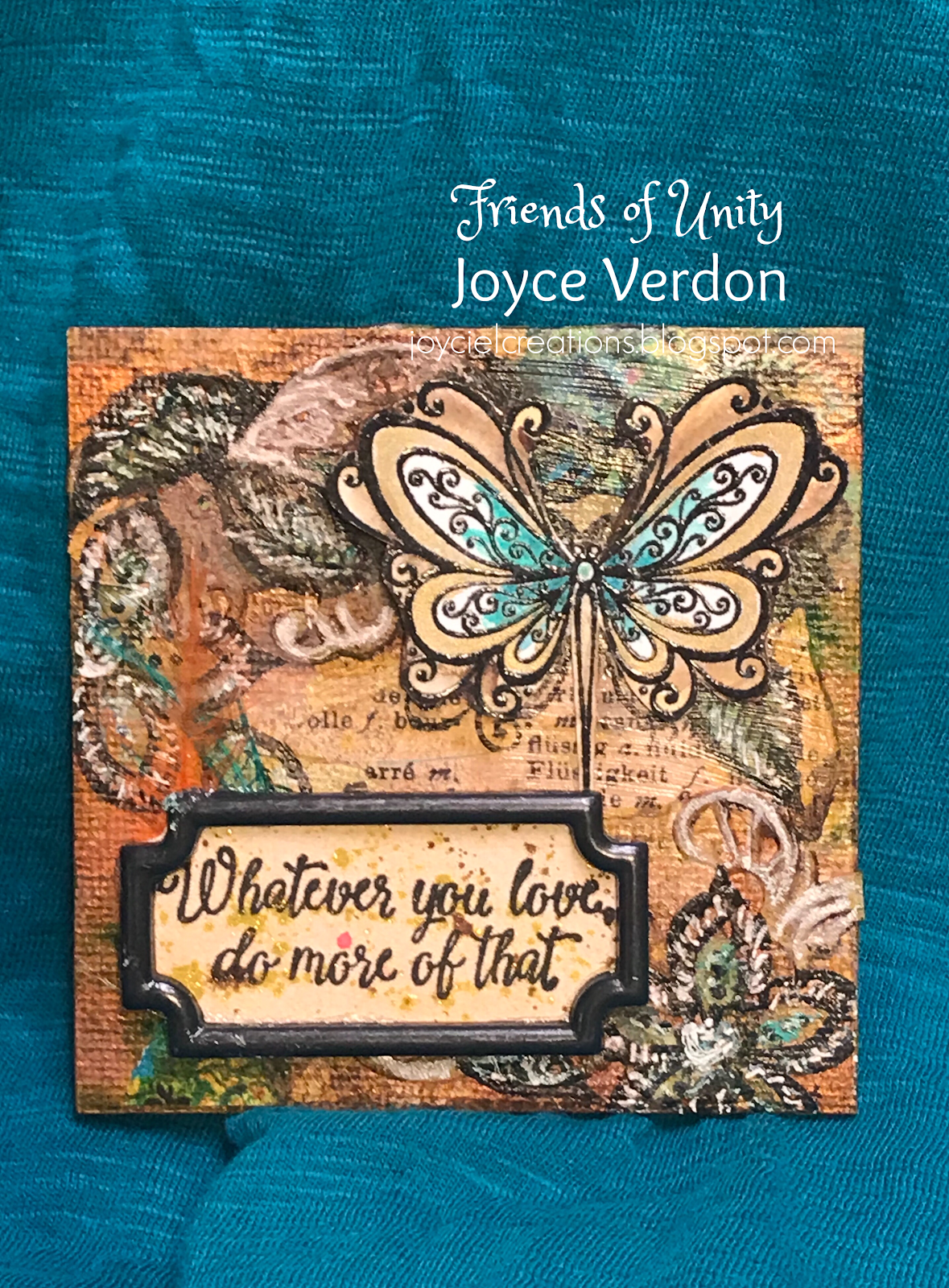 Welcome to March’s Friends of Unity Blog Hop with the very intriguing and challenging theme of Creativity! (I can’t wait to see how the other hop participants addressed it!) I took the opportunity this month to dive head on into the mixed media world. I hope my fledgling foray into this wonderful craft venue inspires you to try, if not mixed media, something new to you. I’ll let you judge my novice attempts, but I have to say, I had fun doing it!